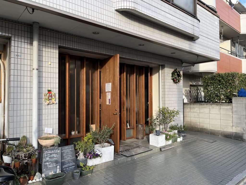 店舗の改修工事の設計をしてから5年の月日が経ちましたが、ピーラーの木製ファサードはいい雰囲気になっていました。